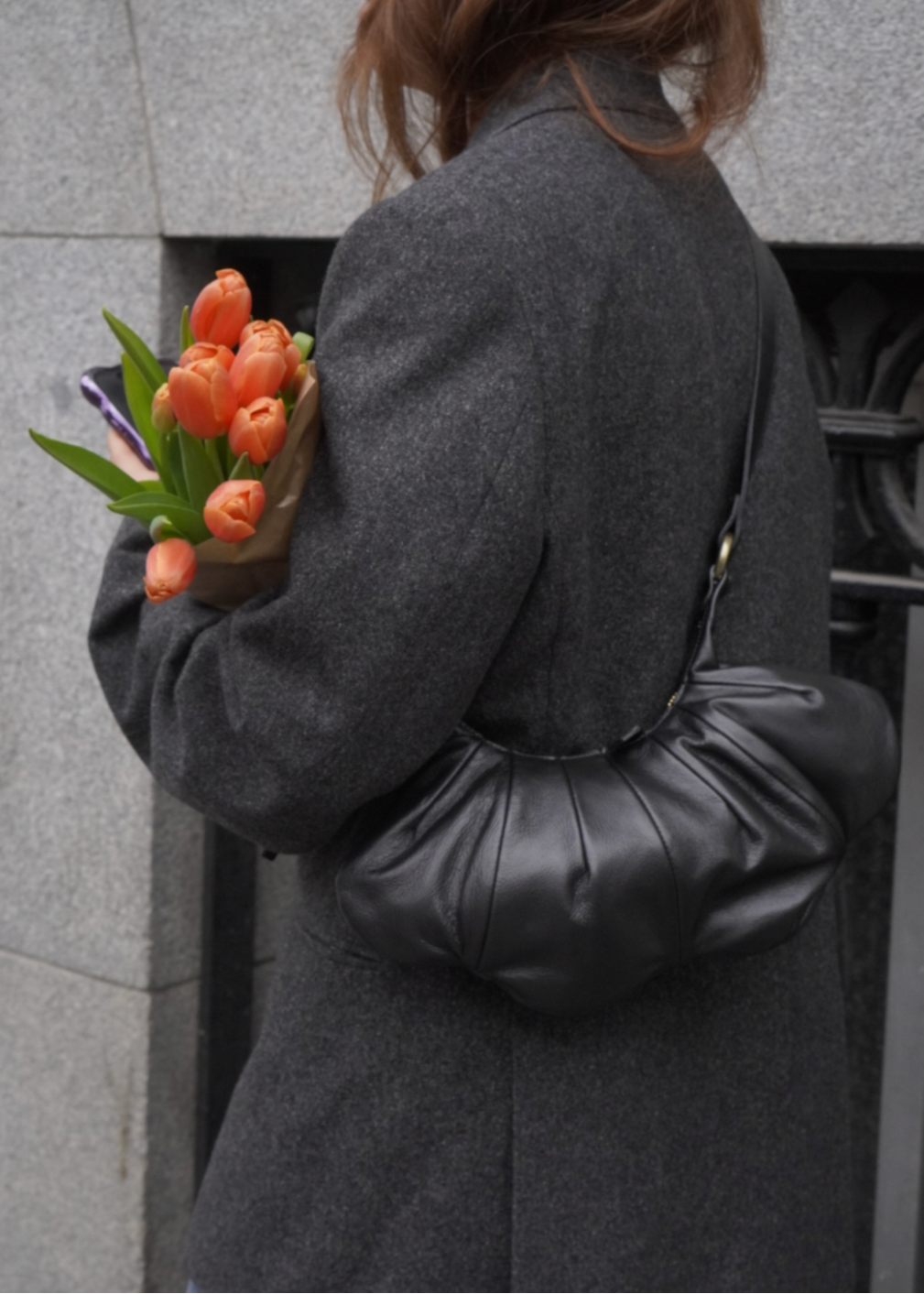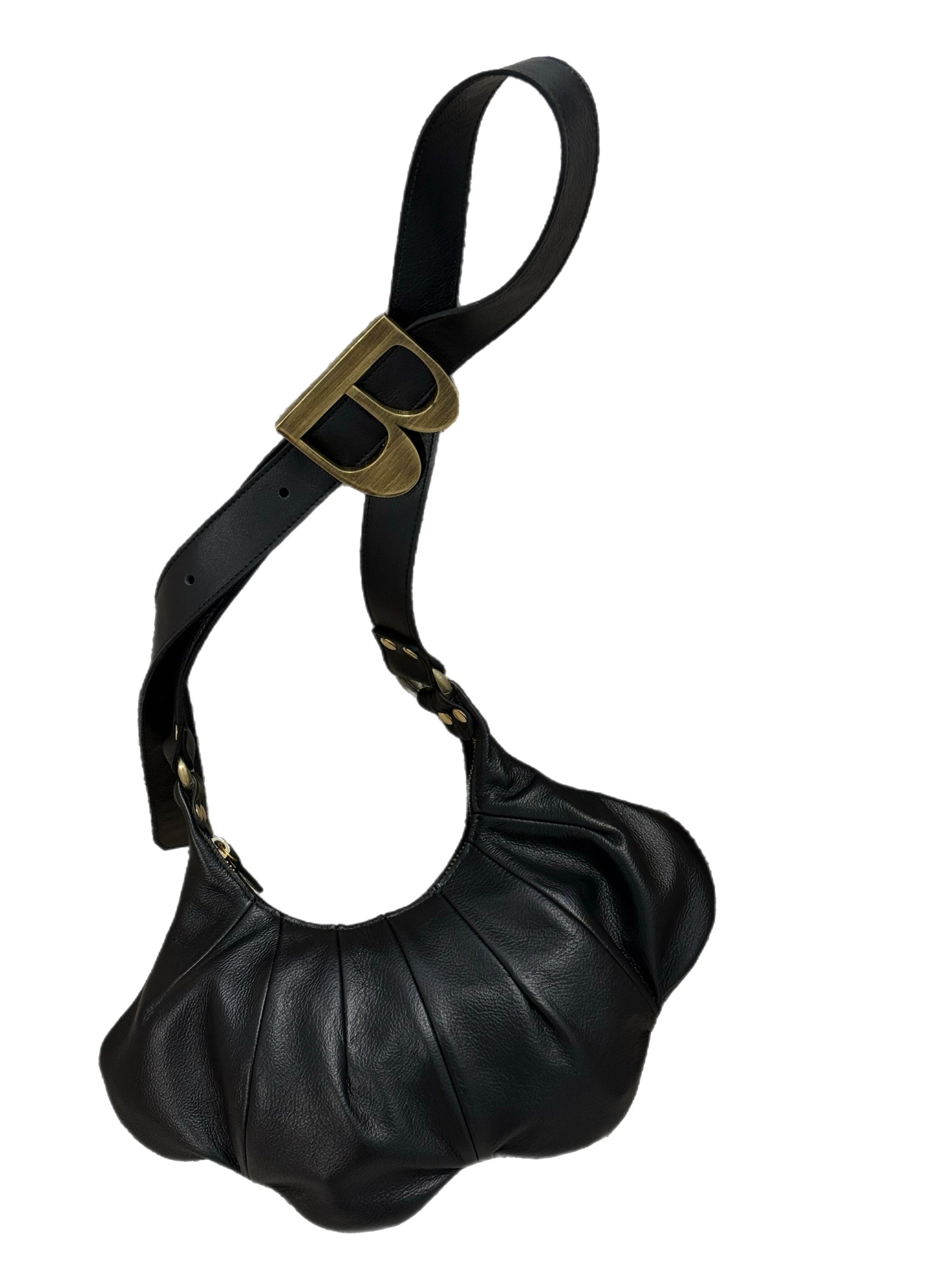 Bolso de hombro en cuero negro. Con tarjetero en el interior y correa ajustable, diseñada para adaptarse a ti. El bolso perfecto pensado para acompañarte en todos los los momentos del día, con carácter y autenticidad.