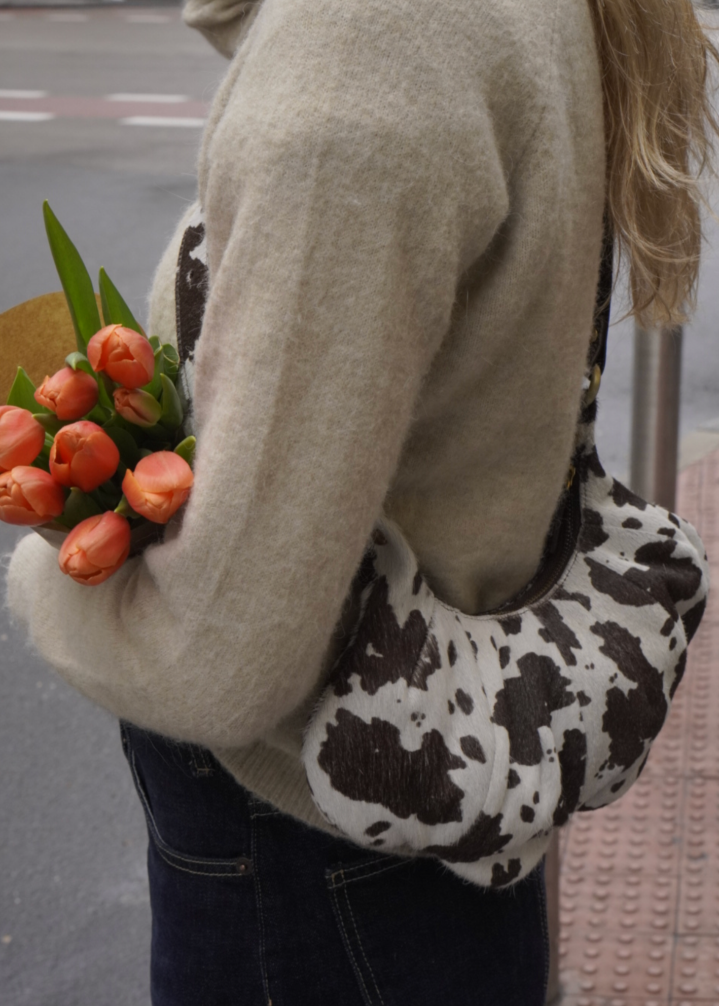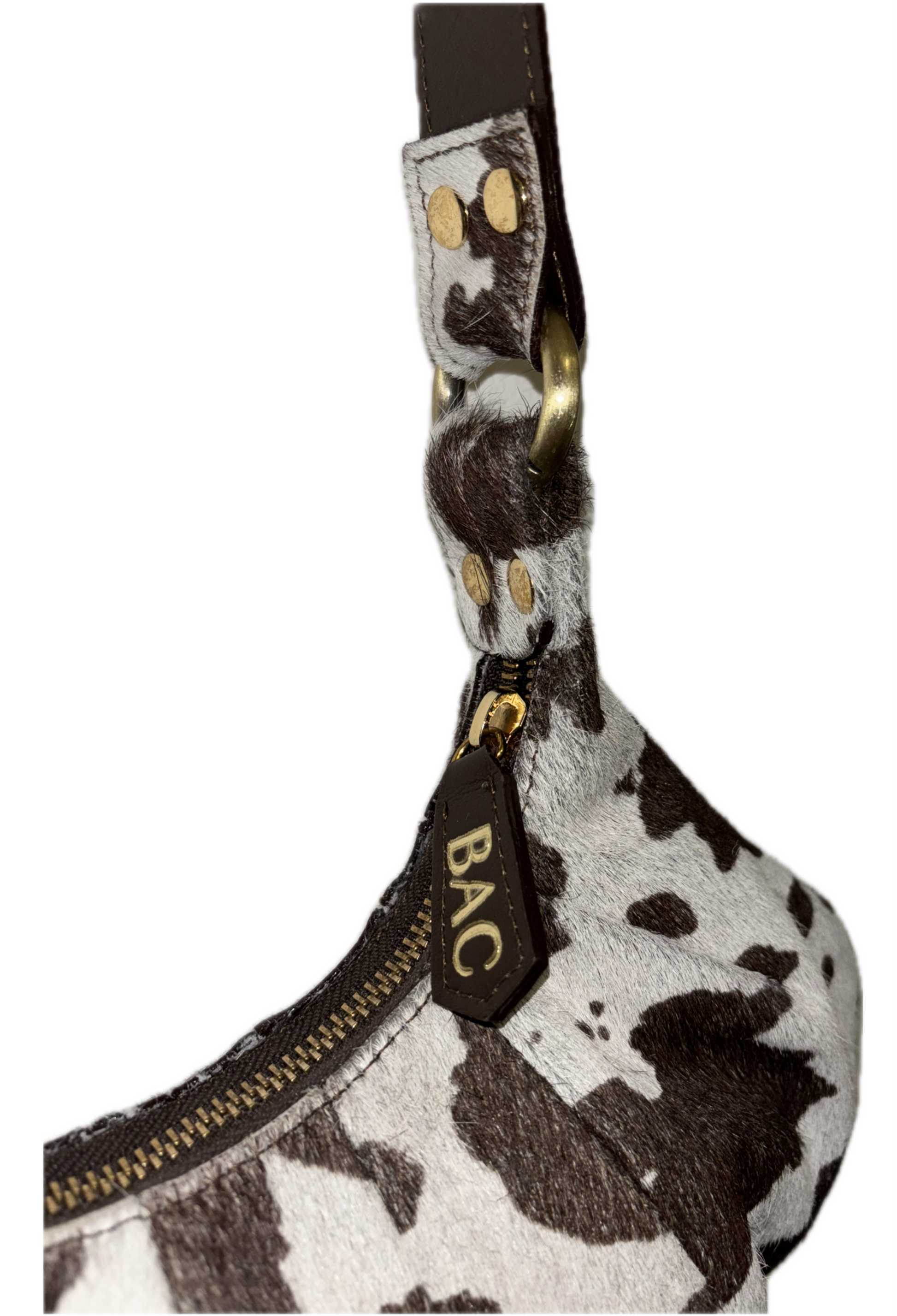 Bolso de hombro en cuero natural con acabado en pelo estampado de vaca. Con tarjetero en el interior y correa ajustable, diseñada para adaptarse a ti. El bolso perfecto pensado para acompañarte en todos los los momentos del día, con carácter y autenticidad.